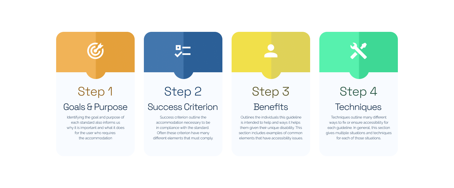 I analyzed the WCAG criteria for both A (basic accessibility) and AA (industry standard) levels. Through this, I learned the requirements and their intent. This helped me confidently report issues to engineers, ensuring we stayed focused on the purpose of the standard, not just the details. I also reviewed the tests, techniques, and exceptions for each requirement.